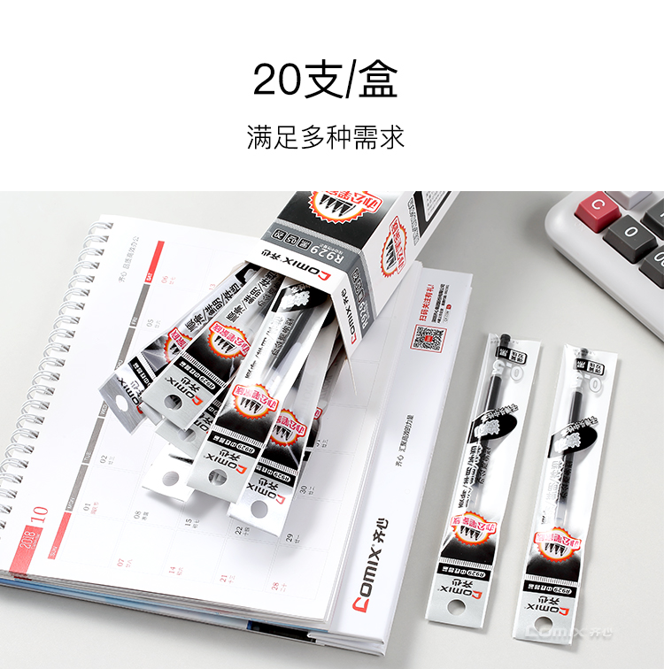 齐心 R929 中性替芯0.5mm 经典按动 墨蓝