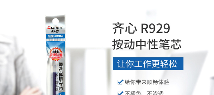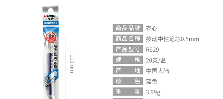齐心 R929 中性替芯0.5mm 经典按动蓝