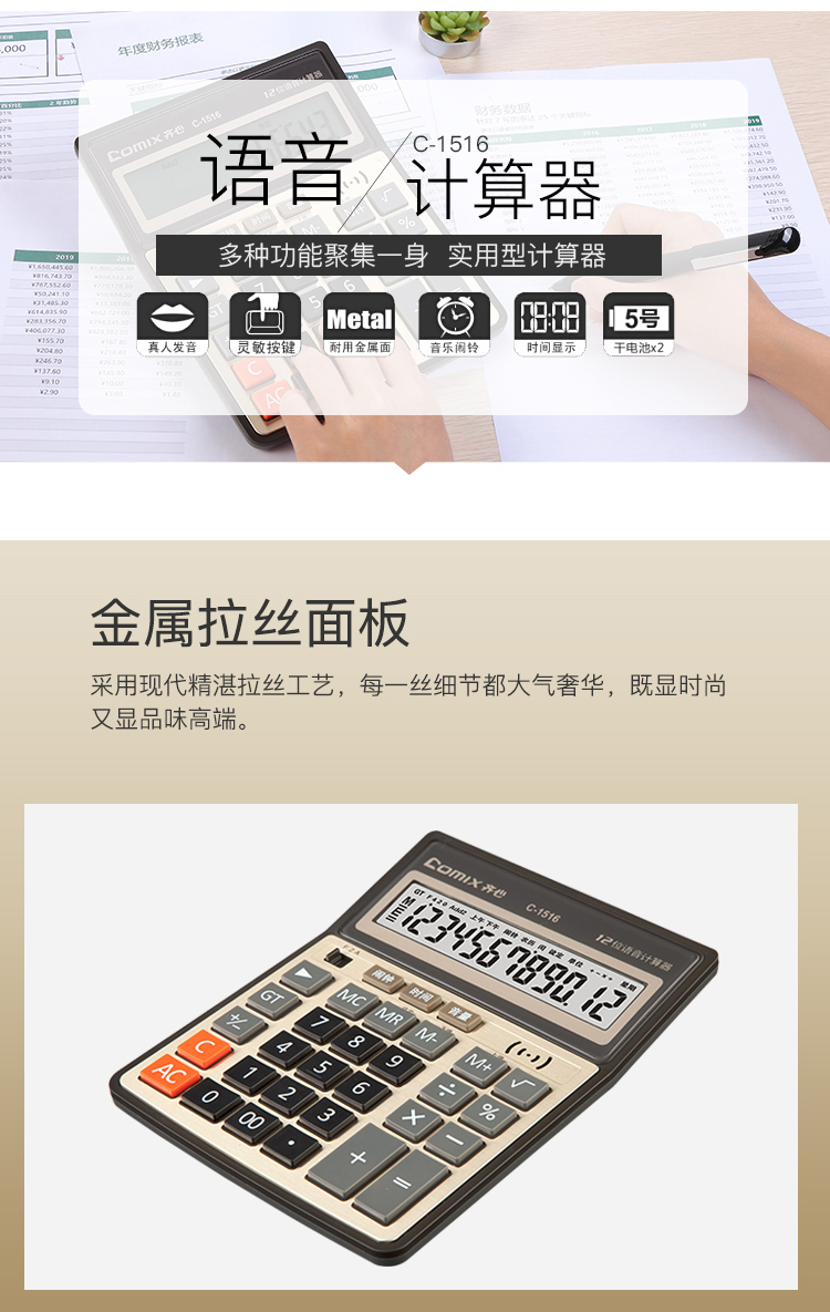 齐心 C-1516 语音计算器 土豪金 单位:个