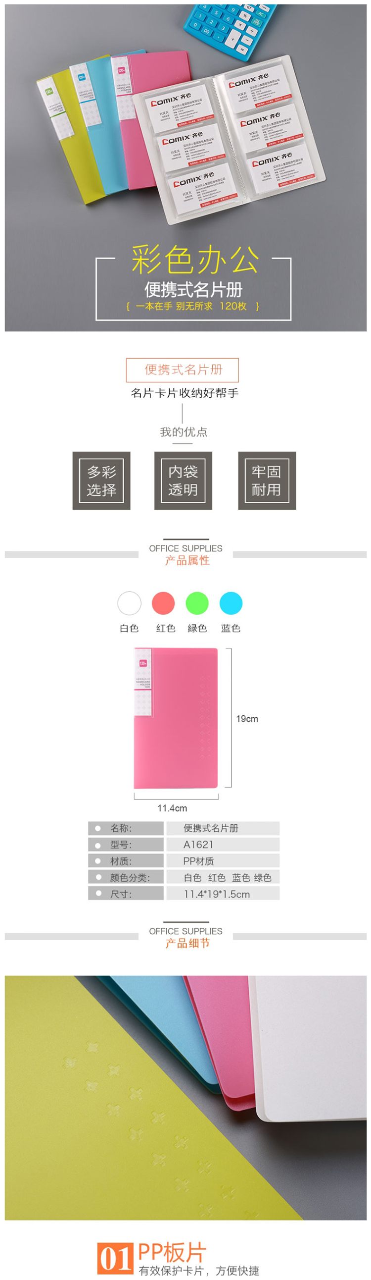 齐心 A1621 抗菌PP名片册120枚 银绿
