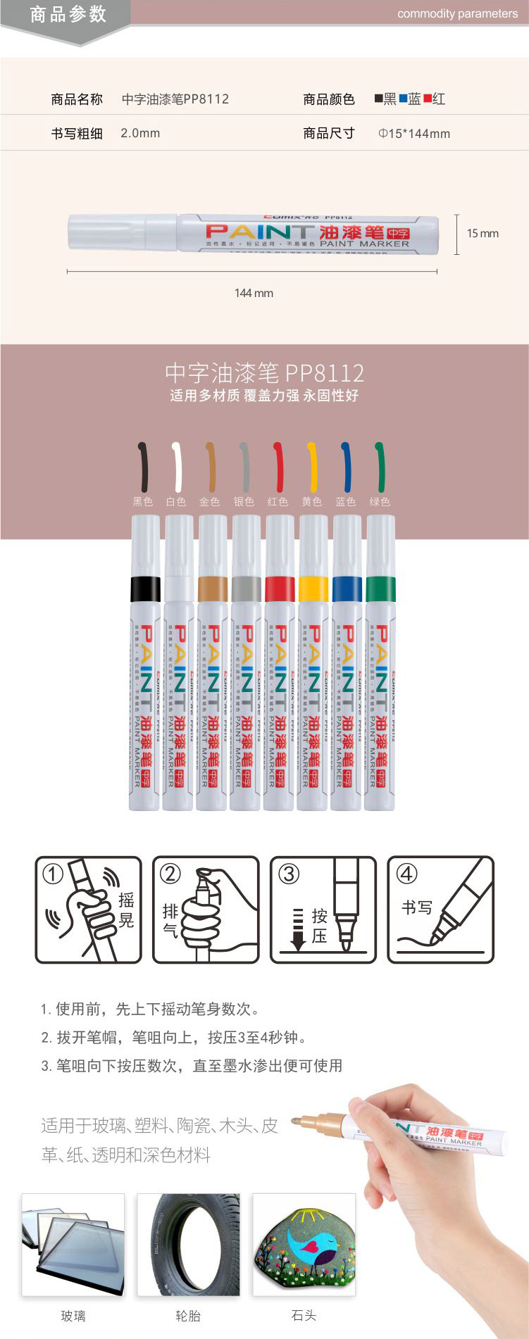 齐心 PP8112 中字油漆笔 2.0mm 黑