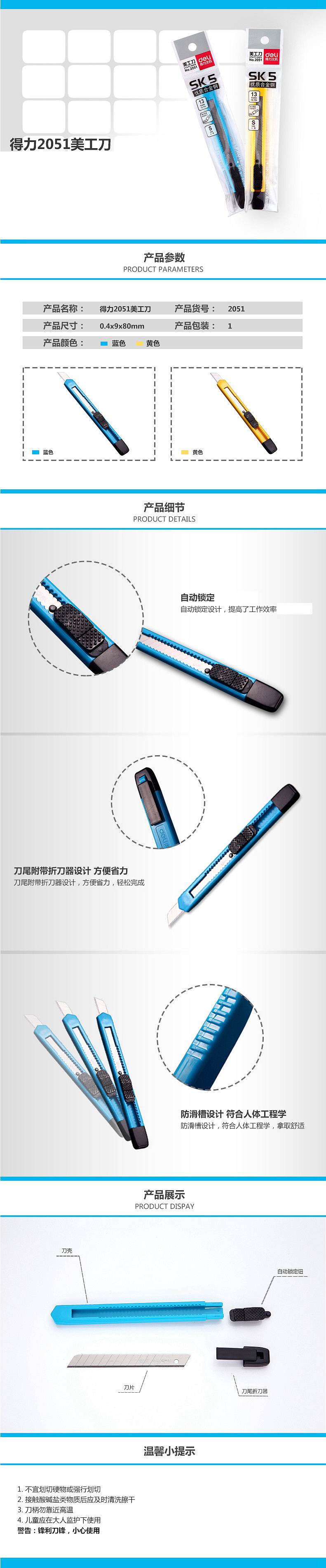 得力2051 0.4x9x80mm(刀片规格)美工刀(黄色)(单位:把)