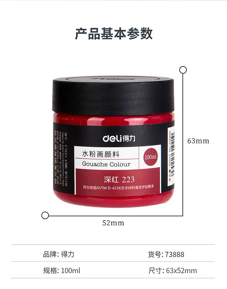 得力73888_100ml水粉颜料_深红(单位:盒)