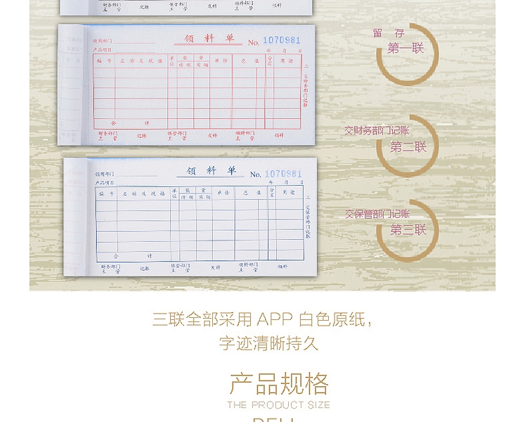 得力 3540 无碳复写单据 175*87mm 10本/包(蓝)(包)