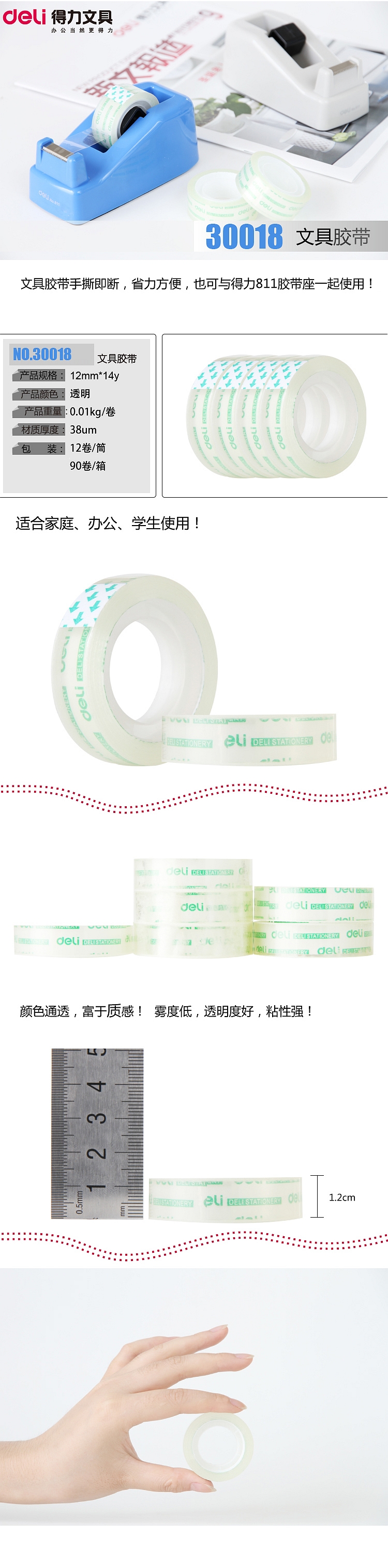 得力30018文具胶带12mm*14y*38um(12卷/筒)
