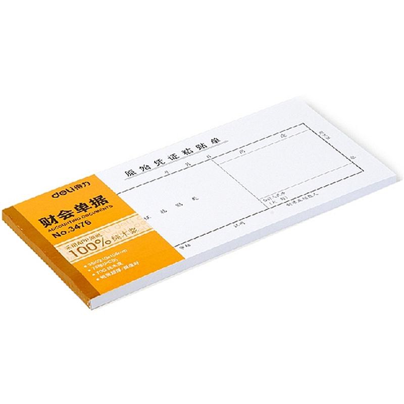 得力 3476 原始凭证粘贴单财务表格财务单据/票据 35k(210x105m (单位:本) 白色