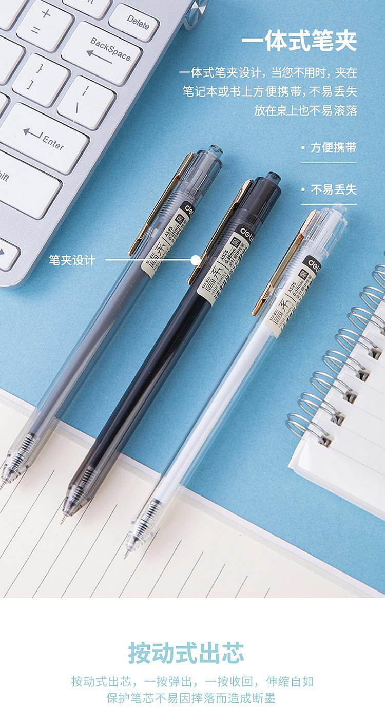 得力A525按动中性笔0.38mm全针管(黑)(支)