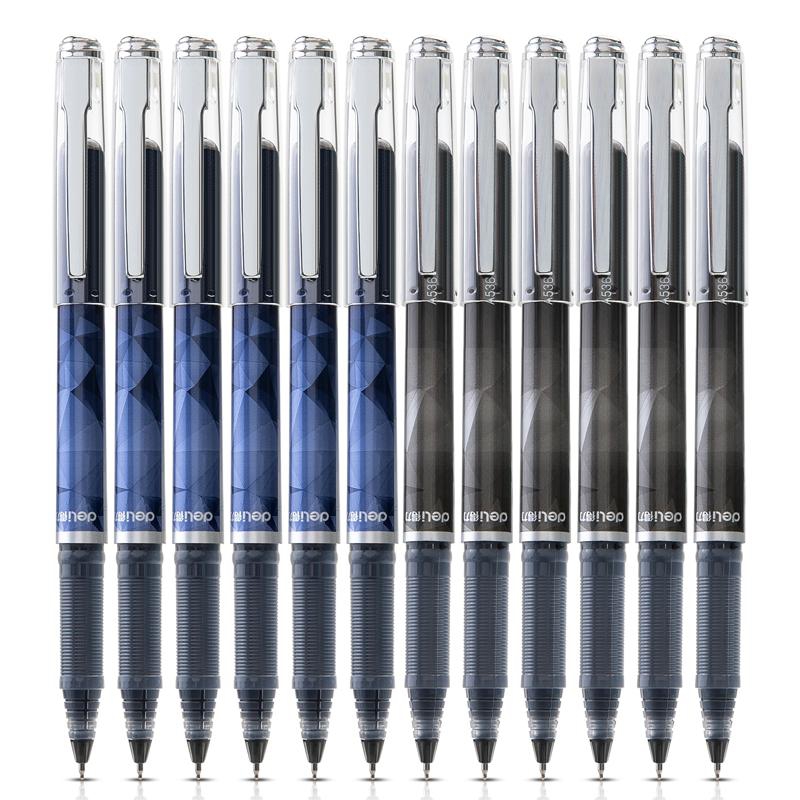 得力A536学生中性笔加强型针管0.5mm大容量速干(黑)(12支/盒)