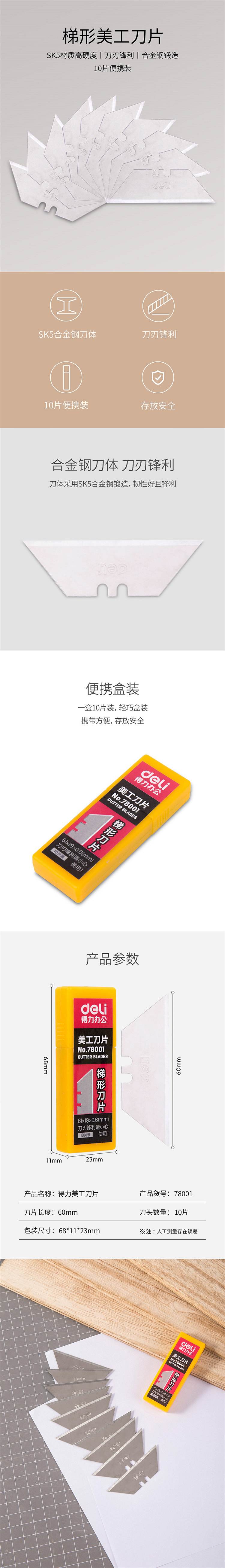 得力78001美工刀片(银色)(10片/盒)