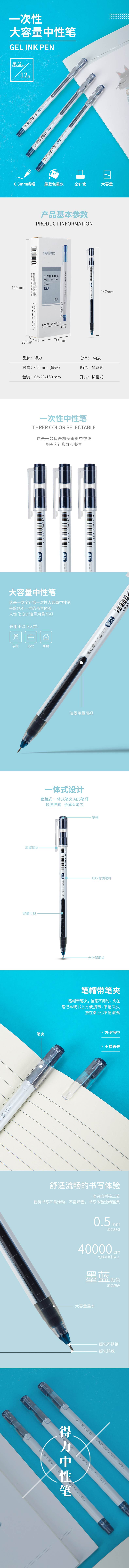 得力A426学生中性笔0.5mm全针管(墨蓝)(单位:支)