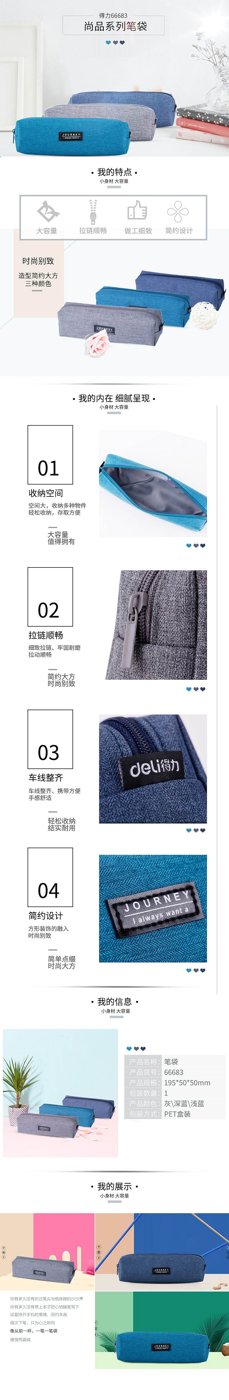 得力66683 195*50*50mm 大容量方形笔袋(浅蓝)(单位:只)