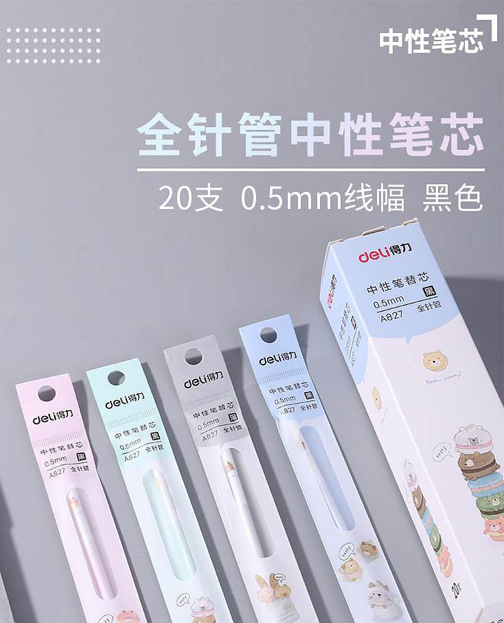 得力(deli)A827学生中性笔替芯0.5mm全针管(黑)(单位:支) 20支每盒