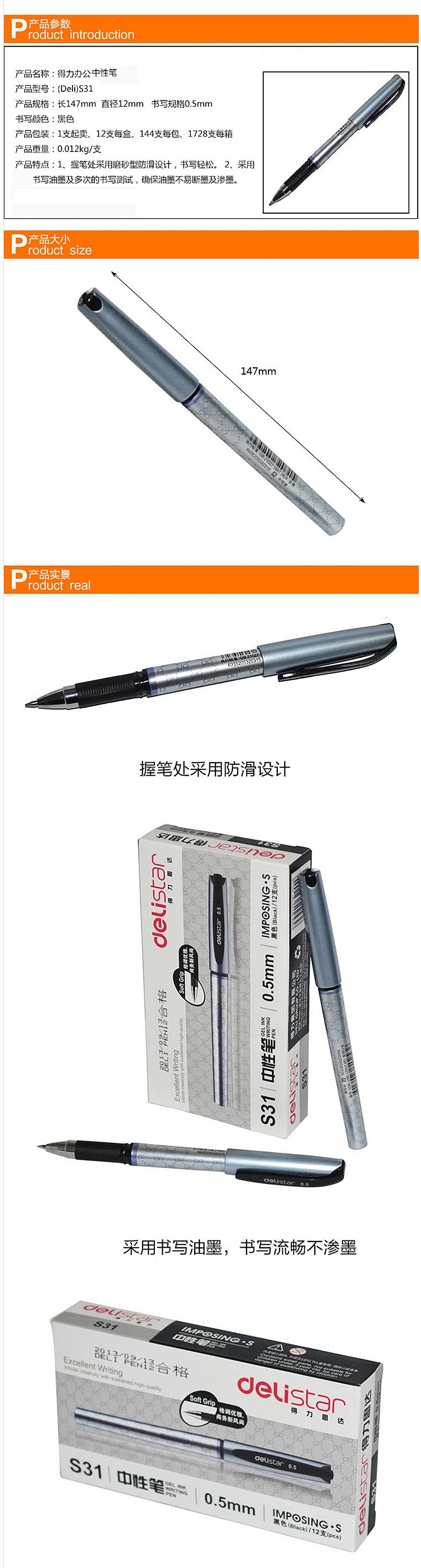 得力S31中性笔0.5mm子弹头(黑)(支)