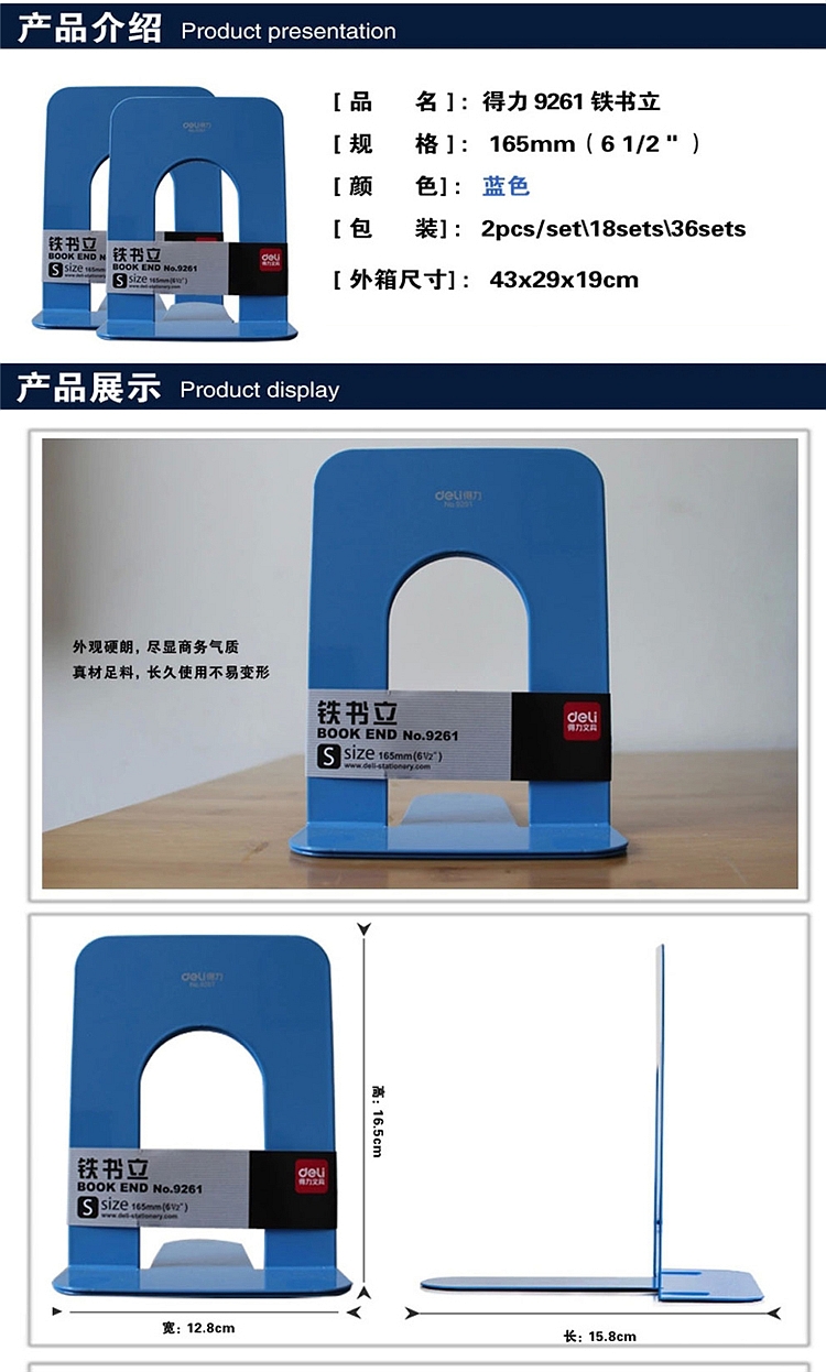 得力 9261 铁书立 -6.5 2片/付 (单位:付) 蓝