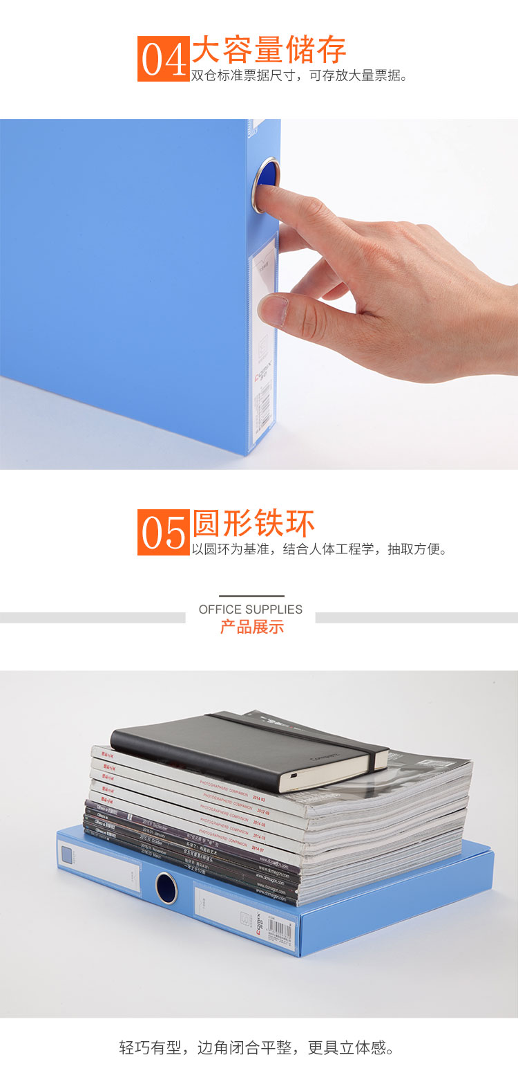 齐心 A1246 A4 增值税发票盒 双格 蓝 (定制)
