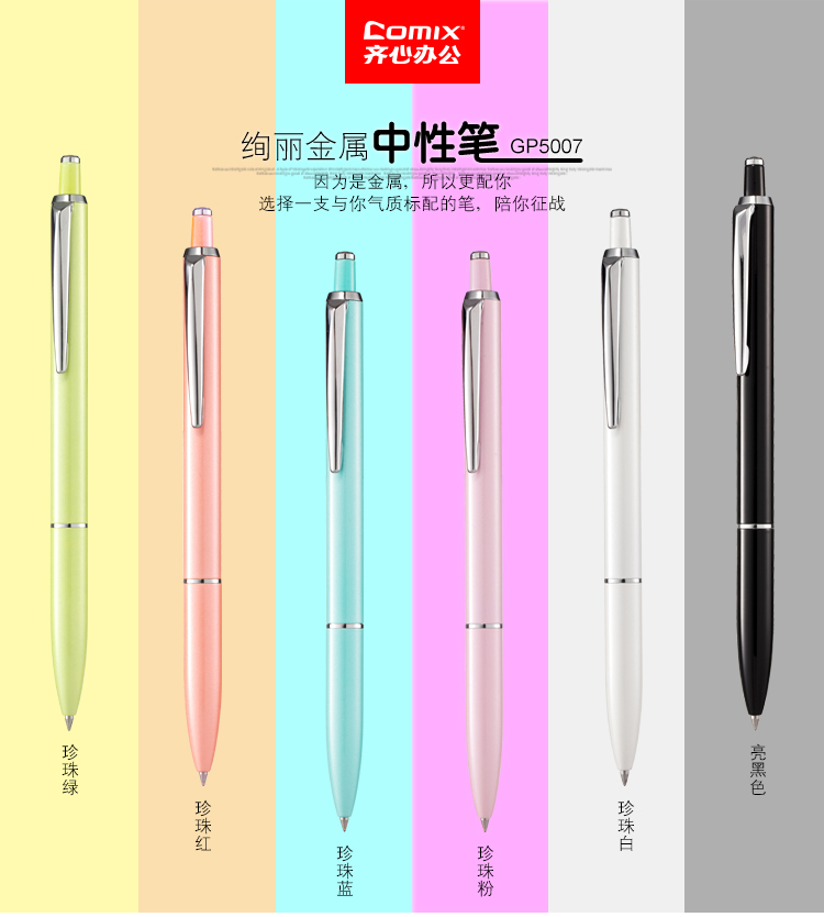 齐心 GP5007 绚丽金属中性笔 0.5mm 珍珠蓝
