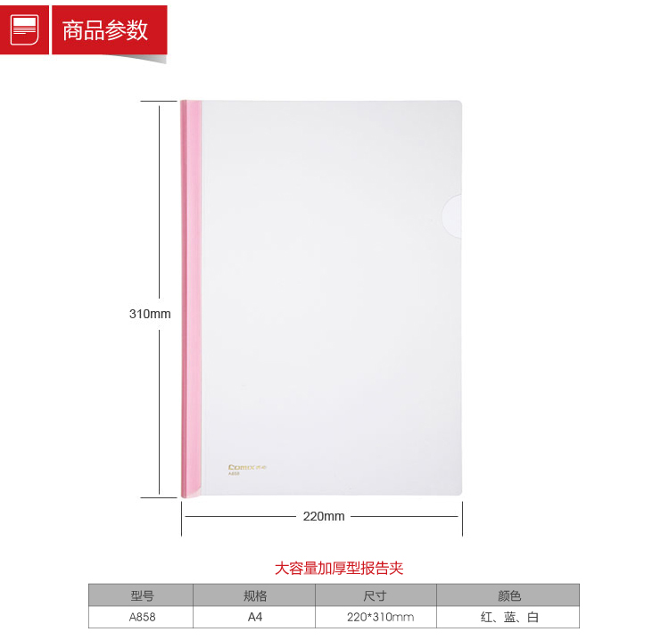 齐心 A858 大容量加厚抽杆式报告夹 A4 80张 透明