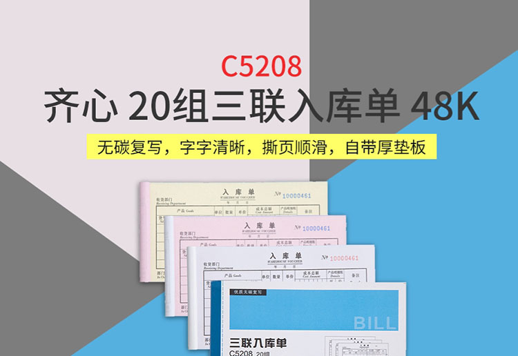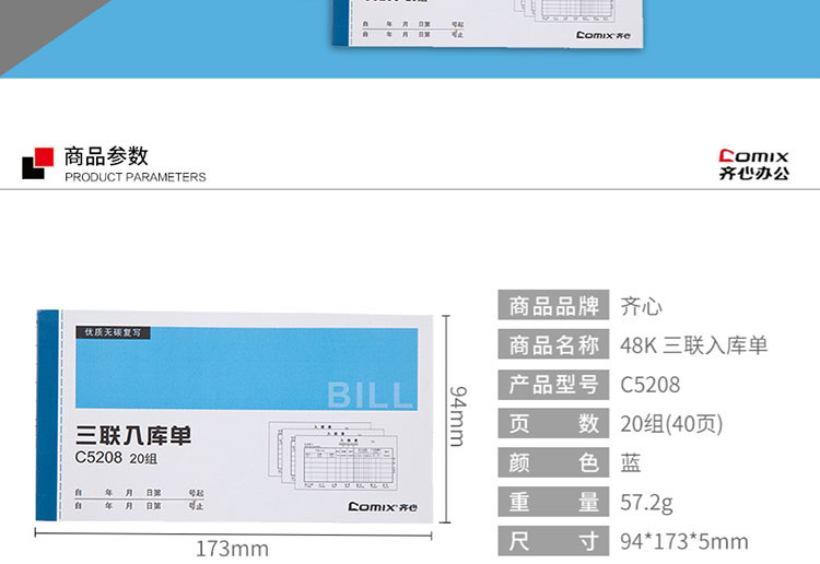 齐心 C5208 三联入库单48K 蓝(单位:本)