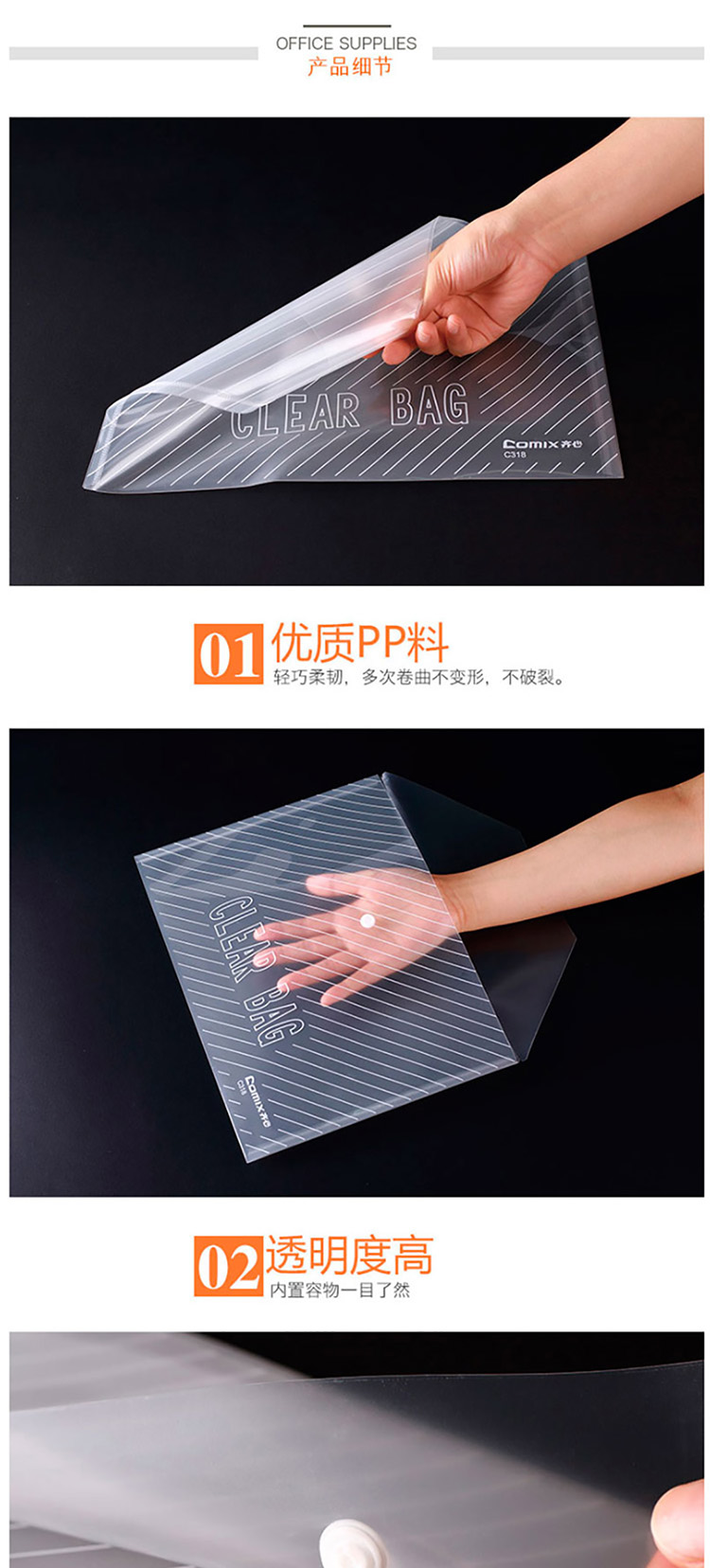齐心 C318 条纹透明按扣袋 A4 单位:个 透明白