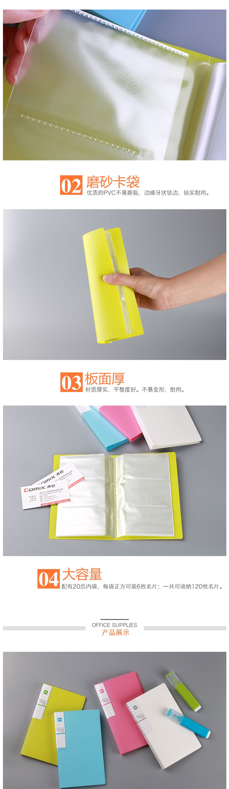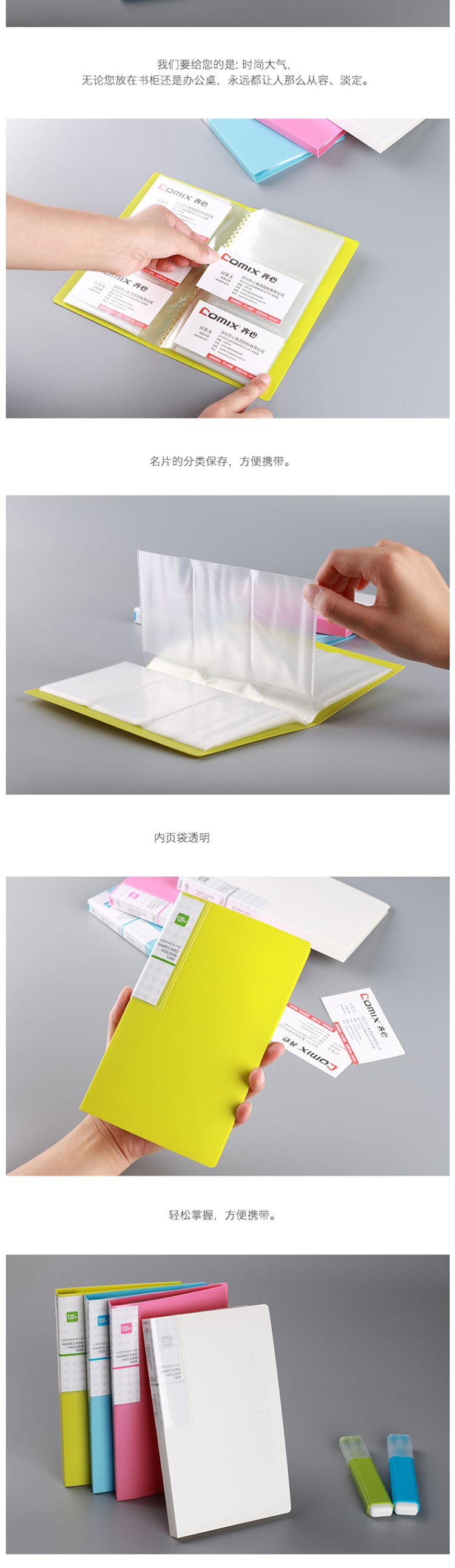 齐心 A1621 抗菌PP名片册120枚 银绿