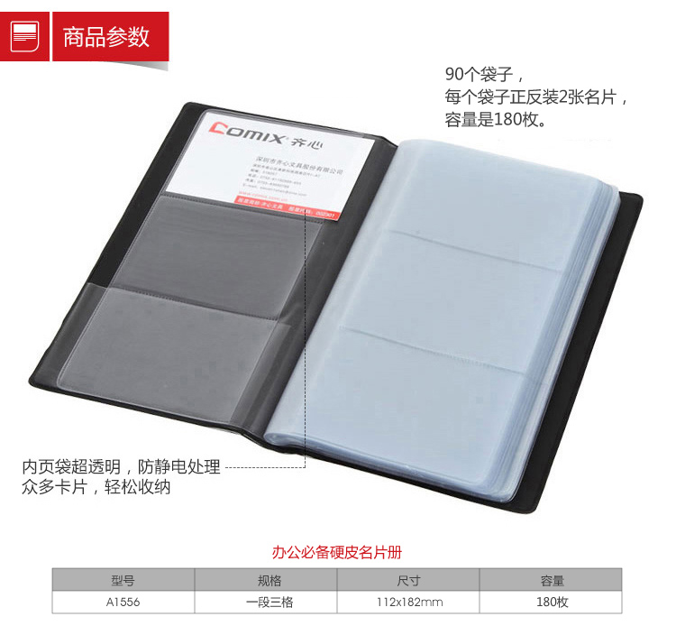 齐心 A1556 办公必备硬皮名片册 180张 棕